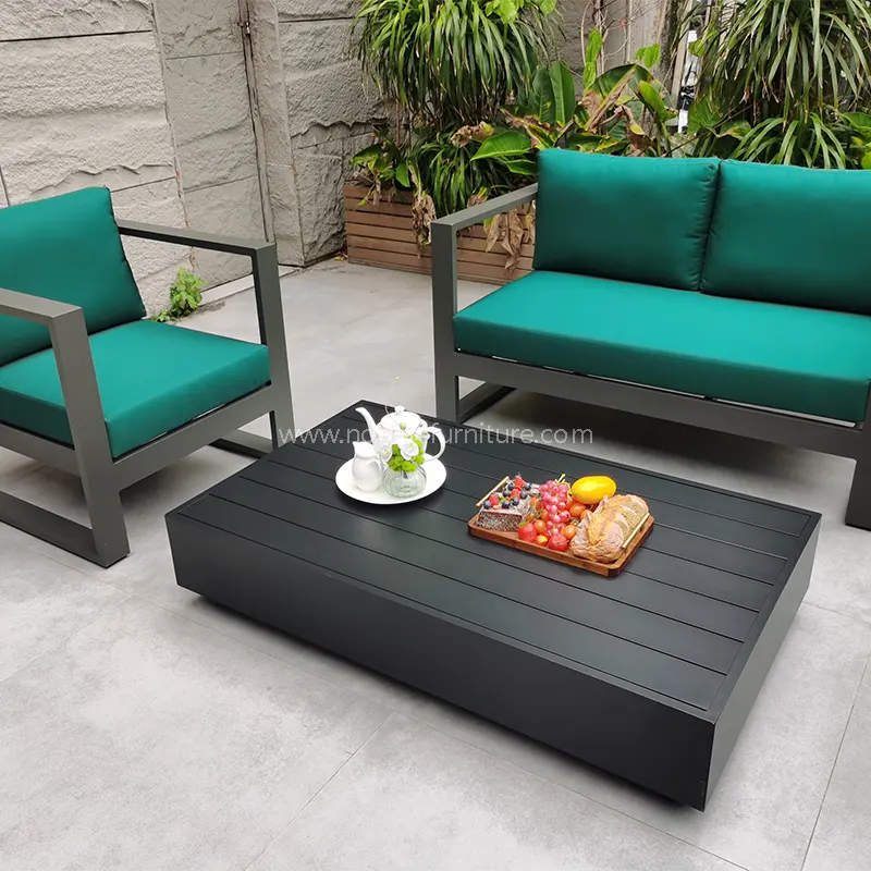 Čierna hliníková zelená vodotesná tkanina terasa záhradná pohovka