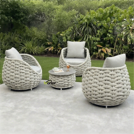 4.Lanová vonkajšia pohovka: Ručne pletený dizajn lana je vizuálne ľahký a priedušný a hliníkový rám dodáva moderný nádych. Kombinácia pohodlia a umenia je obľúbenou voľbou na vytvorenie sofistikovaného balkóna.